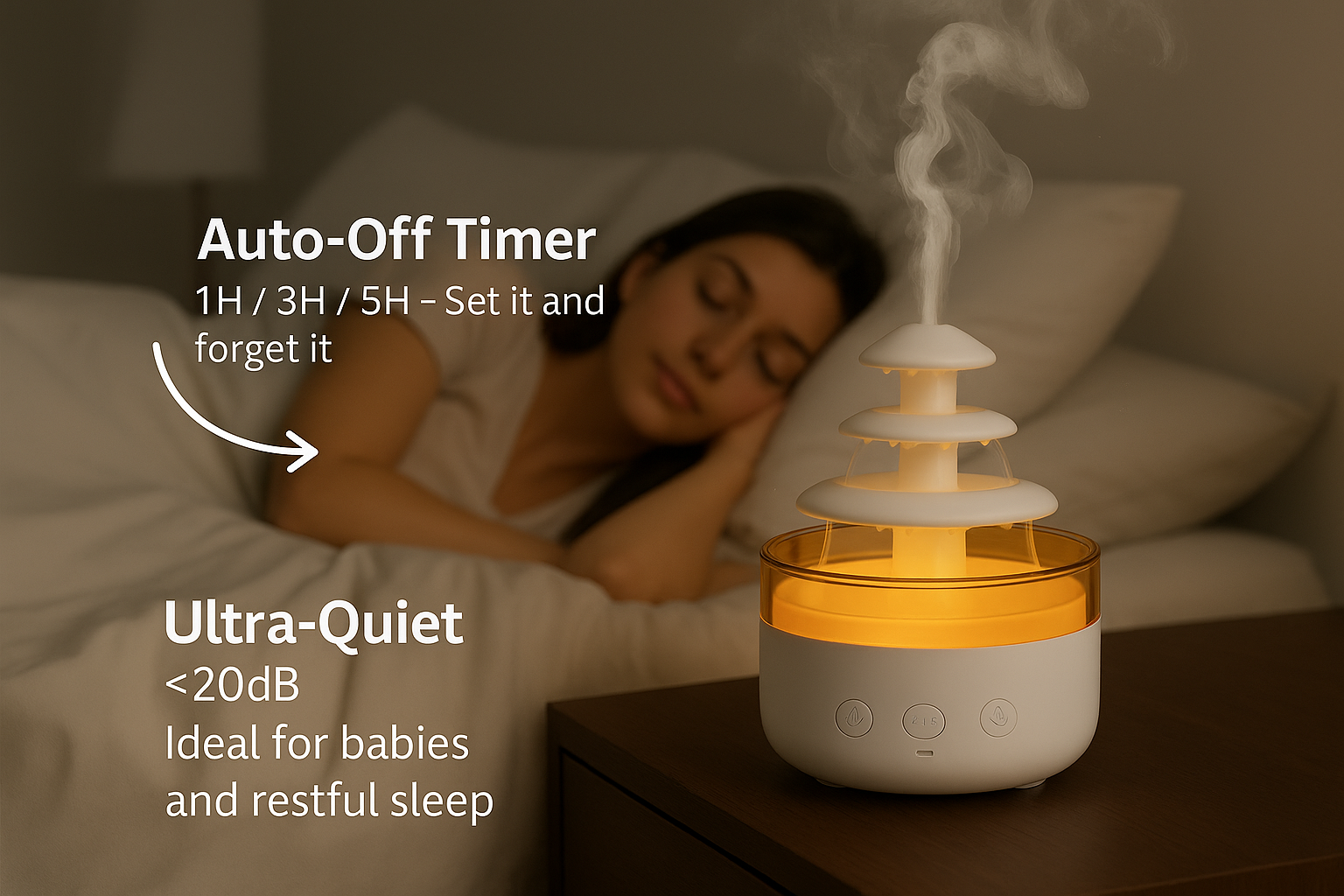 Este humidificador y difusor de aceites esenciales 2 en 1 combina aromaterapia relajante con ruido blanco tranquilizador para ayudarle a dormir mejor.